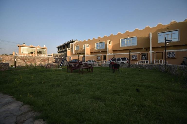 اتبع المسارات التي تصطف عليها الورود في منتجع روعة غيم في الشفا للجلوس المظللة والمغطاة بستائر بيضاء محاطة بالطبيعة، يحتوي المنتجع على مسبح مركزي جذاب ويُمكن للأطفال اللعب في الملاعب التي تحيط بها المساحات الخضراء الرائعة.