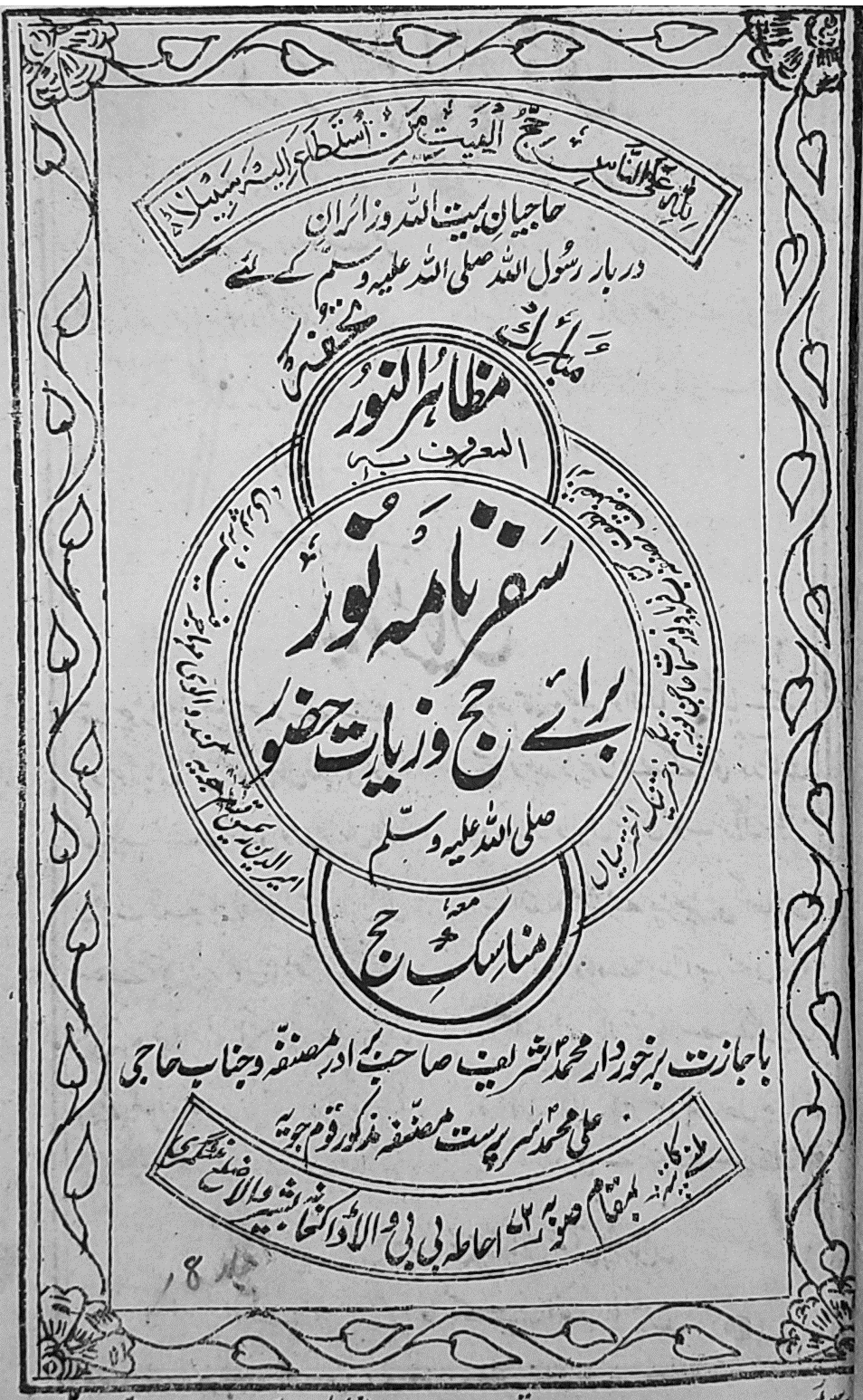 ففي "مَظاهِر النُّور" (تجليّات الأنوار العَلِيّة/ السماويّة) نقرأ الأبياتَ التالية التي نظمتها البيغوم نُور (أترجمها، هُنَا، عن الإنكليزية): "سأكتبُ كُتُبًا وأنظمُ شِعرًا طيلةَ حياتيْ/ لَنْ أندمَ البتَّةَ، وإنْ تقوَّلوا عليَّ الأقاويلَ وأنَّبُونِيْ/ لا أولادَ لِي في هذهِ الدُّنيا، ولكنَّ هذا النِّداءَ الإلهيَّ يدعُونِيْ/ يظلُّ ذِكْرُ المرءِ سائرًا في عَقبهِ، ولكنَّ إرثي سوفَ يكونُ/ فَلْيَطِرْ ذِكْري، بِمَا أكتبُ، إلى يومِ القيامةِ/ وَلْيُنجِّنِي اللهُ، في ذلكَ اليومِ، مِن جميعِ الكُرُبَاتِ". ولتحقيق هذه الرغبة في الخلود بالقصيدة/ الكتابة في الزّمن، مستجيبةً إلى ذلك النداء الجوّاني، الذي أفصحت عنه في الأبيات الآنفة، شرعت هذه المرأة، المولودة في قرية صغيرة بالبنجاب في الهند، في رحلة حجّ إلى مكّة في عام 1931، مُدوّنةً مُشاهداتها وانطباعاتها في أشعار خلتْ تمامًا من أيِّ ذِكْر لزوجها الذي رافقها، هو ووالدتها، في تلك الرحلة التي دامت أشهُرًا ثلاثة.