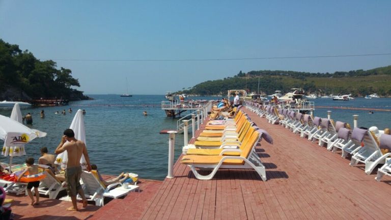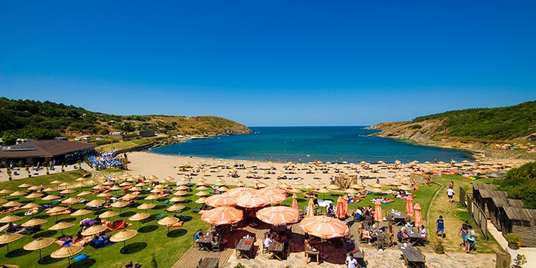 ستجد في شاطئ أوزونيا الذي يُعد واحدًا من أفضل شواطئ إسطنبول كراسي استلقاء للتشمس ومظلة تمتد على الرمال والمناطق العشبية.