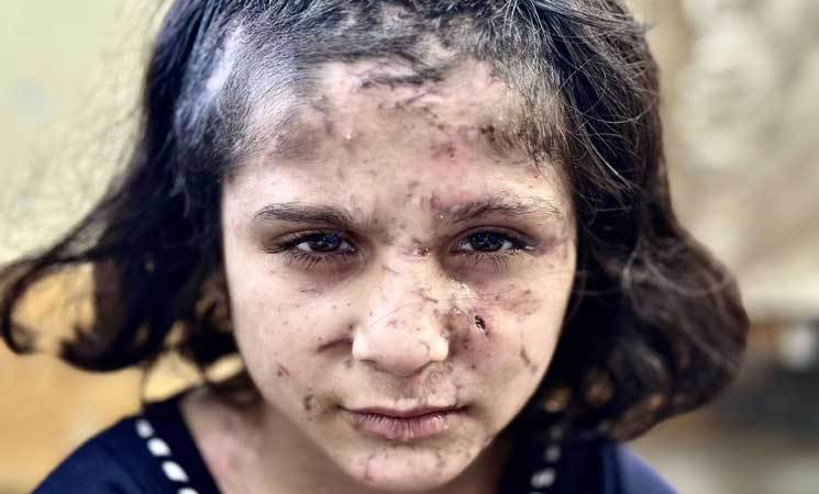 في تلك اللحظة التي سقطت فيها الصواريخ على مدرسة الإيواء، كانت الطفلة “يارا” تلعب مع صديقاتها حيث فقدت البصر والسمع جراء الإصابة، كما قالت.