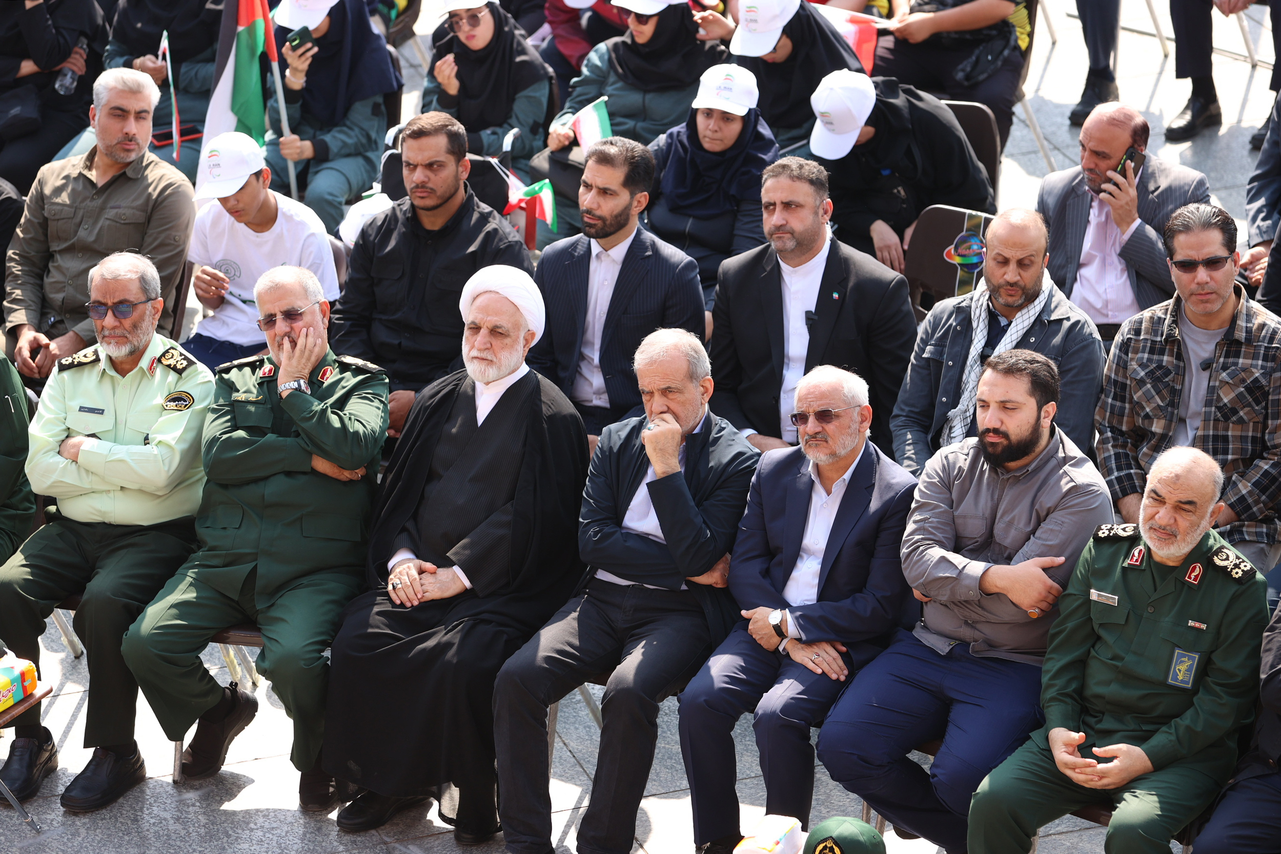 وحضر مراسم التشييع الرئيس الإيراني مسعود بزشكيان، إلى جانب كبار المسؤولين المدنيين والعسكريين، بحسب مراسل الأناضول.