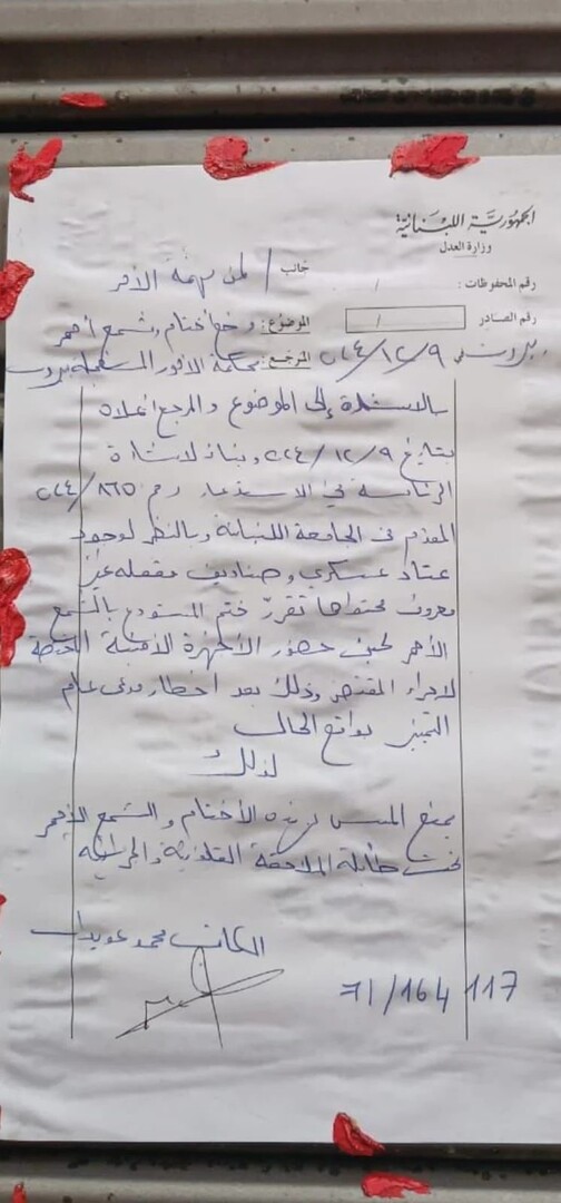 وأفادت الجامعة اللبنانية بأنه "وبناء على ذلك اتخذ القاضي قرارا بإقفال المستودع بالشمع الأحمر لاستكمال التحقيقات واتخاذ الإجراءات القانونية اللازمة".