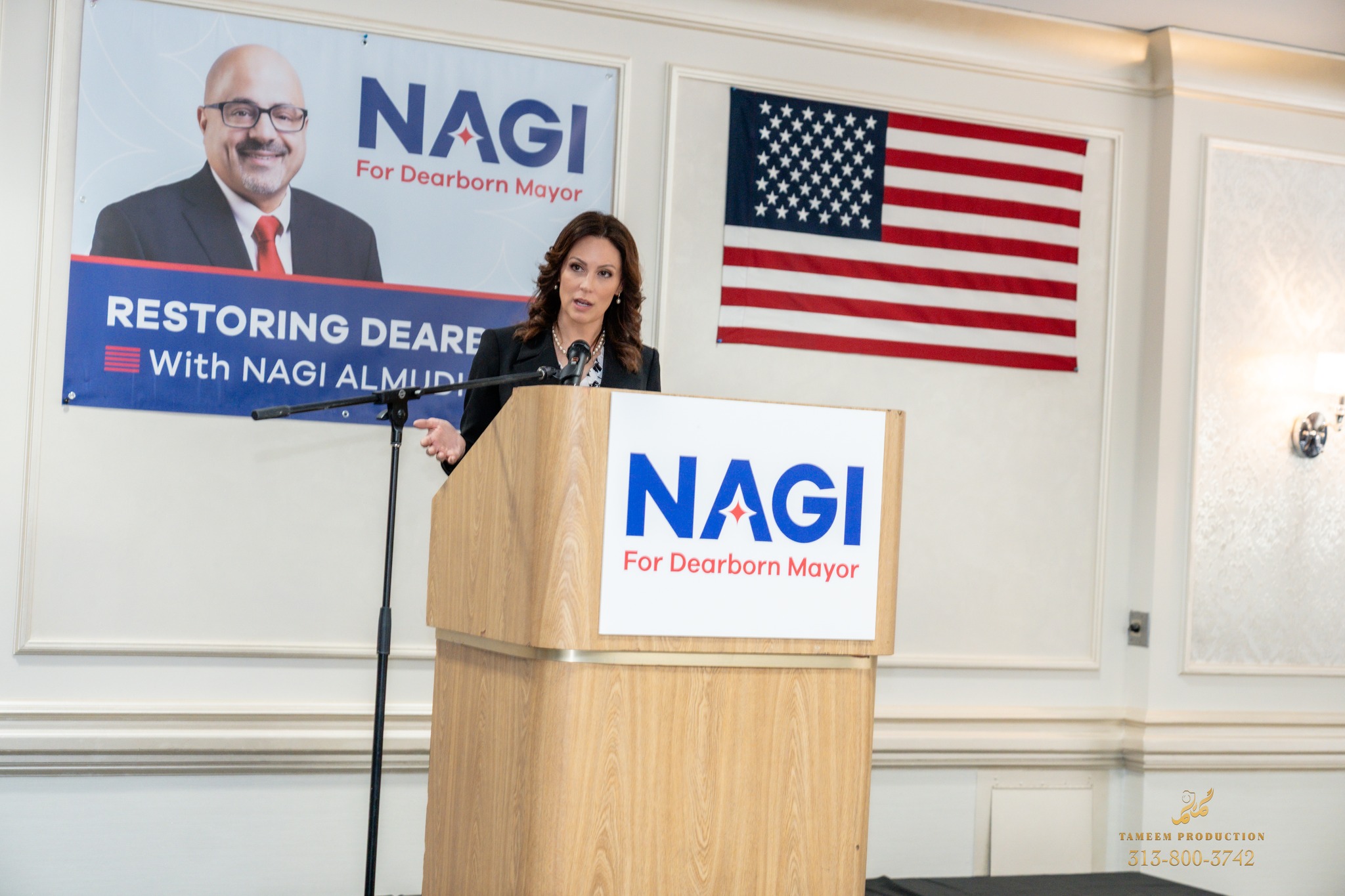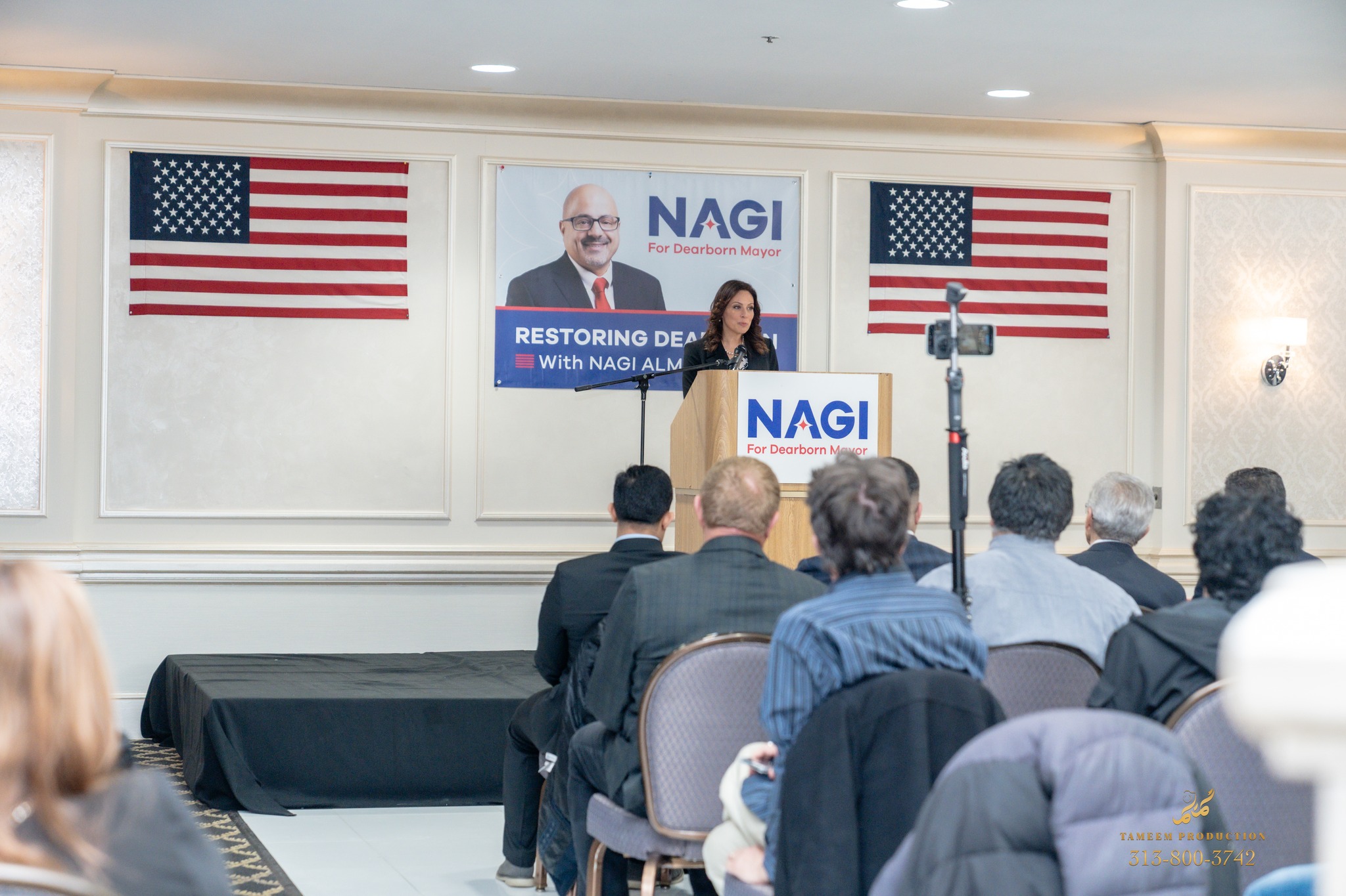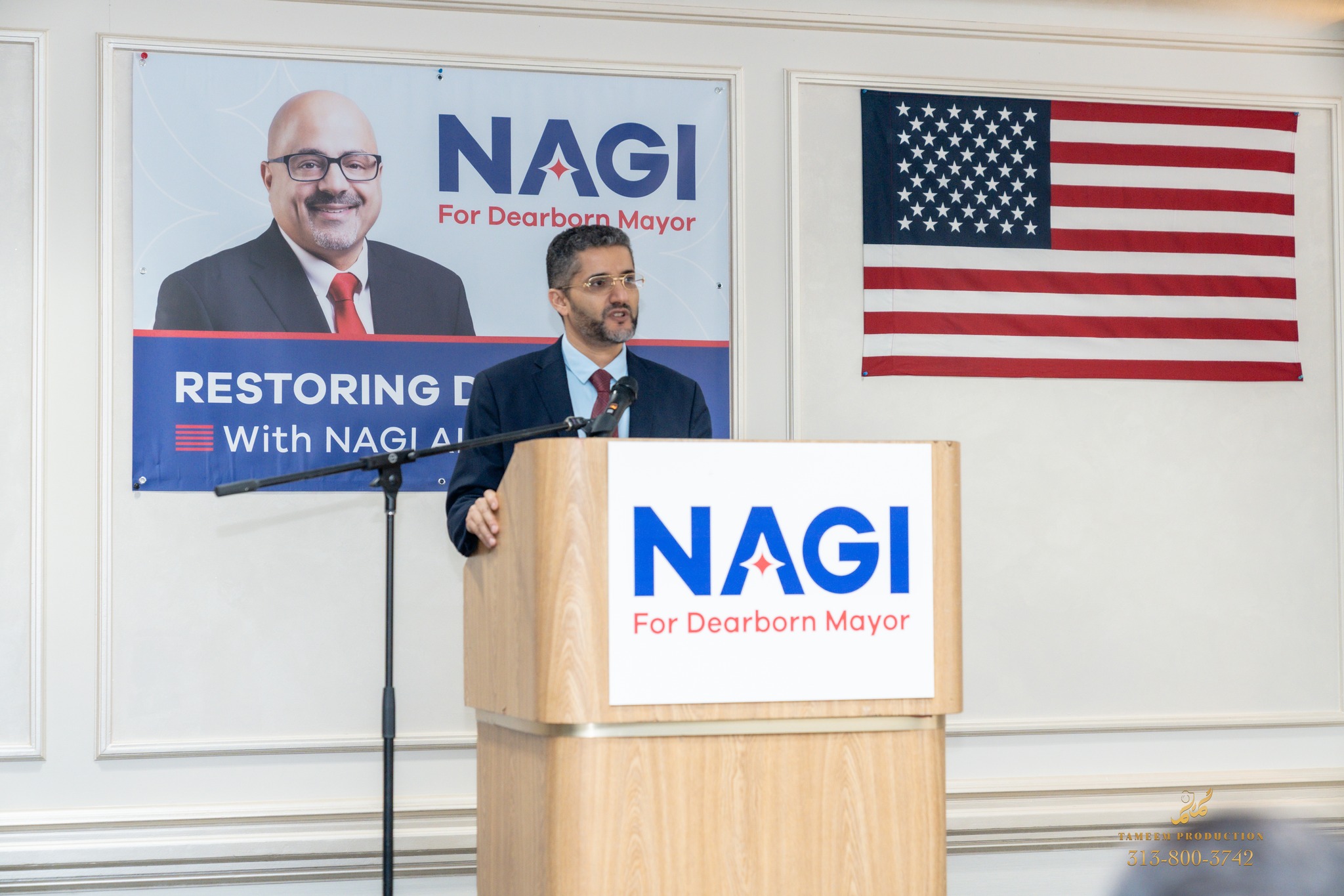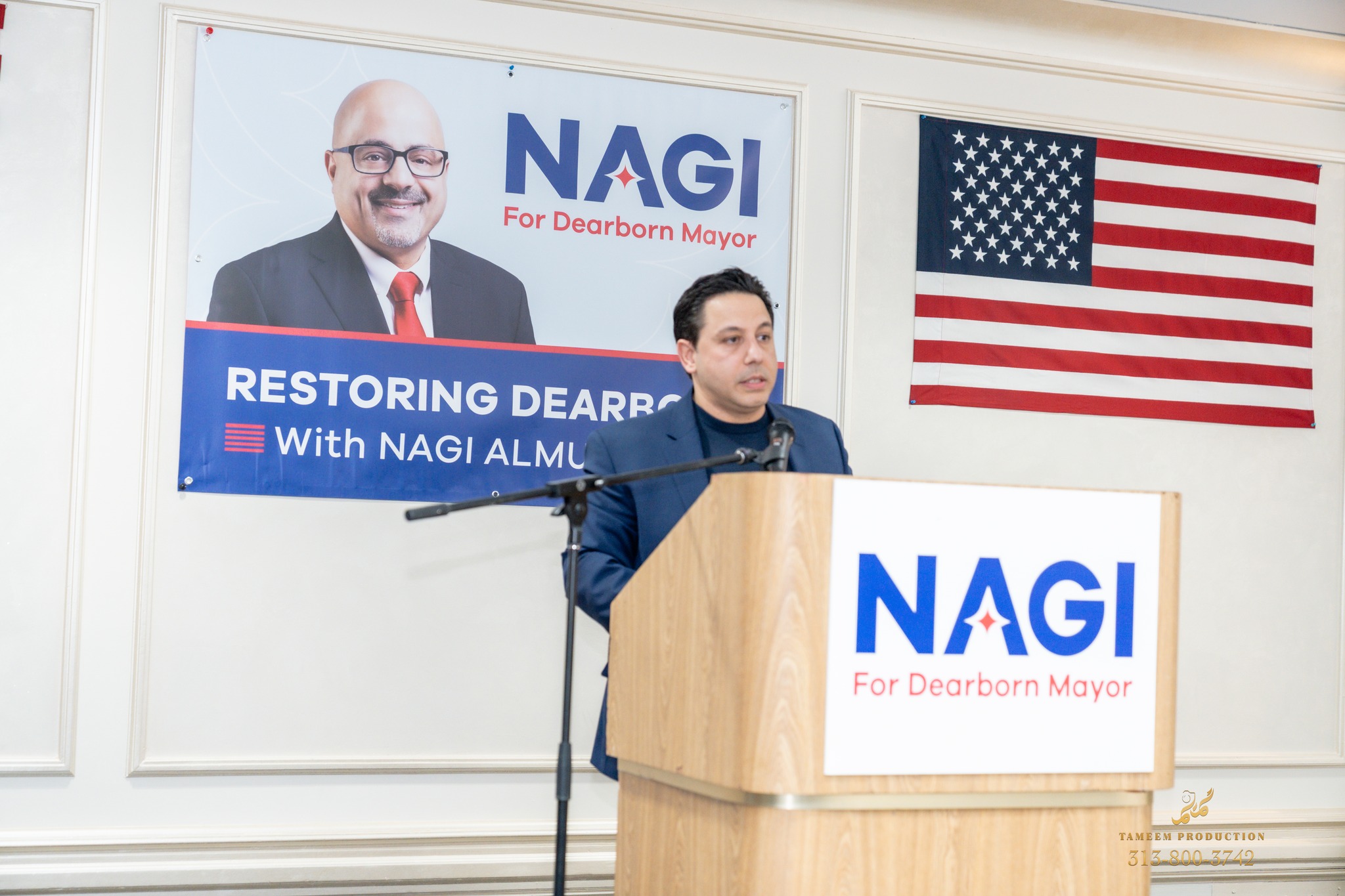 ديربورن - الأمة برس - محمد دهسان الدعيس - وسط حضور جماهيري كثيف اكتظت به قاعة نادي ڤرلين كلوب بمدينة ديربورن أعلن اليمني الأميركي المهندس ناجي المدحجي رسميا ترشحه لمنصب عمدة بلدية ديربورن ، حيث افتتح الحفل على أنغام الأغنية الوطنية “God Bless the USA” بينما زينت خلفه ملصقات تحمل العلم الأميركي وصورة المرشح .