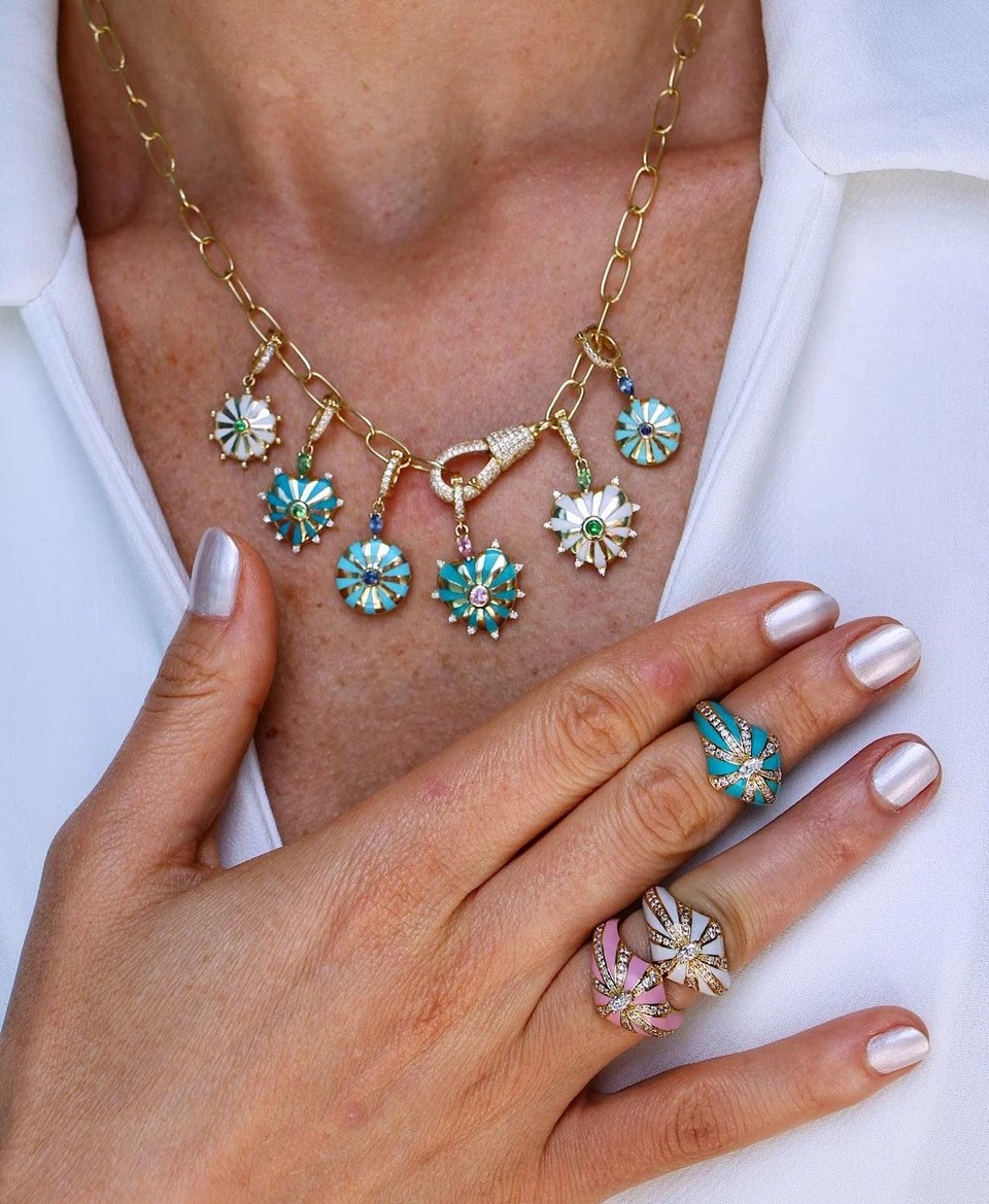 - قلادة «ميلا الشمسية» (Mila Sun): مستوحاة من الأمومة ودفء الشمس، وتضفي نورًا وتألقًا على أي إطلالة.