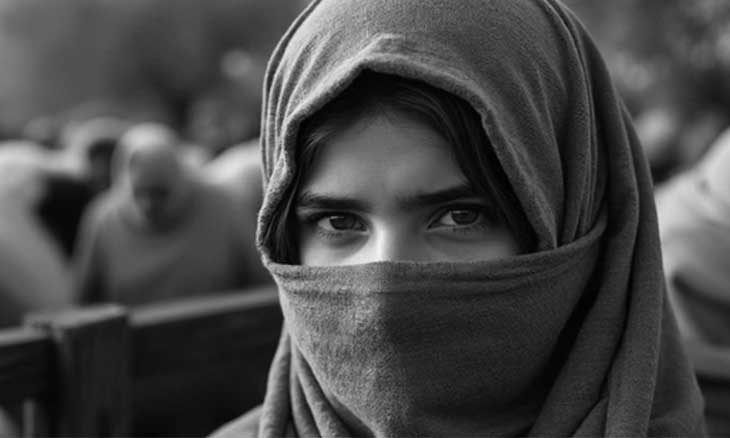 زينب وحيدة في المنزل تستعد للصلاة، زينب في الثانية عشرة من العمر، لا تزال تخطو خطواتها الأولى نحو الالتزام بالصلوات اليومية. بينما تثبت حجابها، دخل رجلان من الباب، سمعت خطوات أقدامهما على التراب، استدارت، تعثرت، سقط الحجاب على الأرض بجانب سجادة الصلاة. وجّه الرجلان بنادقهم إلى صدرها، صرخا في وجهها وأمراها بالخروج. أطاعتهما، رفعت الحجاب من الأرض، ولفته على رأسها وكتفيها. قادها أحدهم إلى الخارج حافية القدمين، بينما الآخر راح يفتش البيت الصغير.