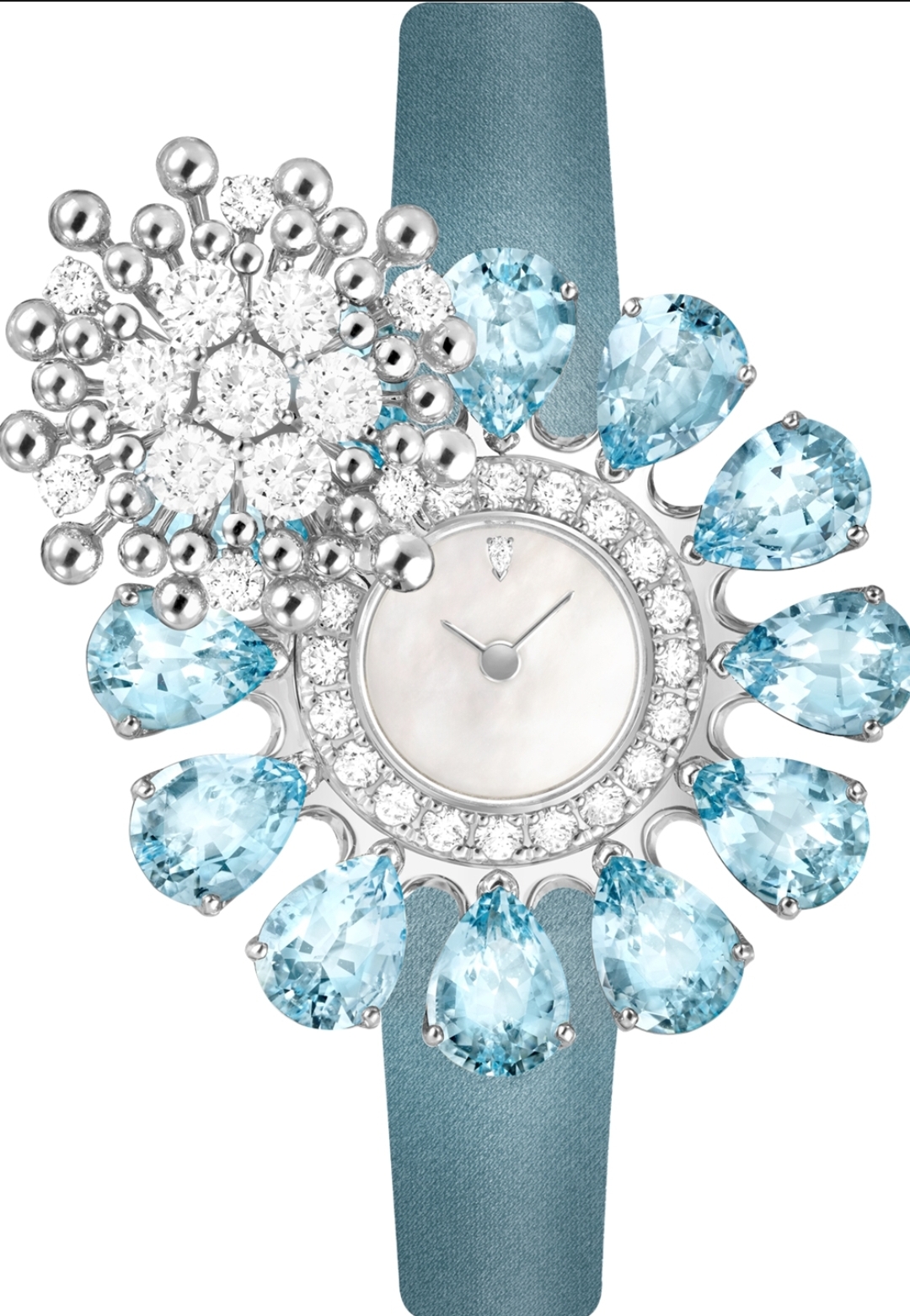 ويمكن فصل الزهرة، حسب الرغبة، لتُلبس كإكسسوار، أو مشبك، أو قلادة، ما يمنح قطعة المجوهرات التي تقرأ الوقت على المعصم إطلالة رائعة بفضل التلاعب الغني بالألوان. ويلتقي لون السترين مع الذهب الأصفر، ولون الرودوليت مع الذهب الوردي، بينما يتناغم لون الأكوامارين مع الذهب الأبيض. ويكتمل هذا التناسق اللوني، من خلال سوار الساعة المصنوع من الساتان الذي يرافق كل قطعة، ليُضفي لمسة نهائية من الأناقة المطلقة.