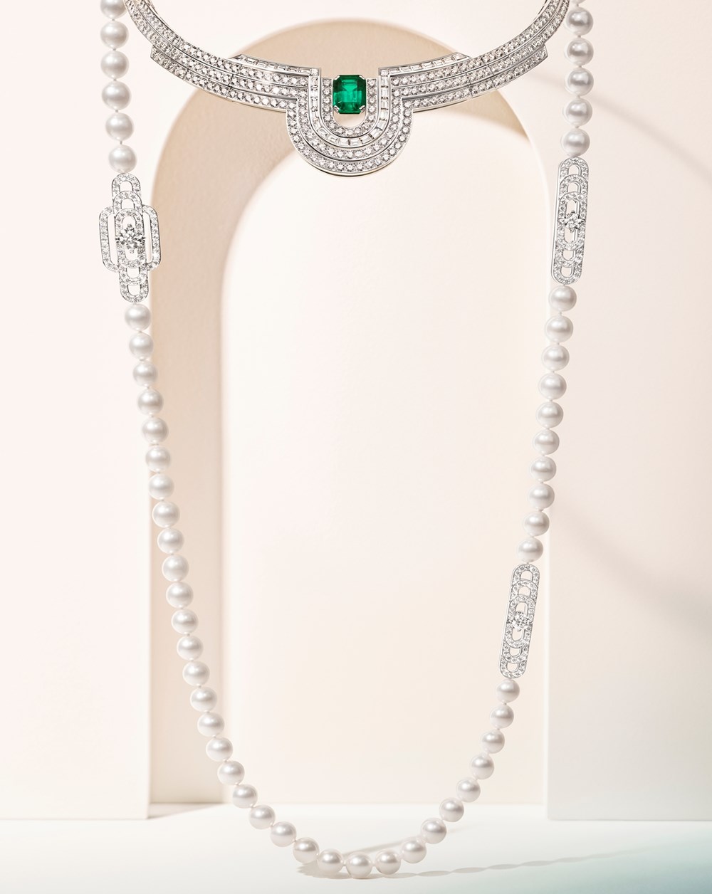 - احتفاء باللؤلؤ المستزرع: تُختتم مجموعة «1936» باللؤلؤ المستزرع، الذي استلهم منه فريد صامويل بداياته. عقد طويل مرصع بلآلئ أكويا الناعمة، يعكس ضوءاً زهرياً فاتحاً، ويتداخل مع الأقواس المتشابكة المزدانة بالألماس اللامع، ليكشف عن بريق متناغم وجميل.