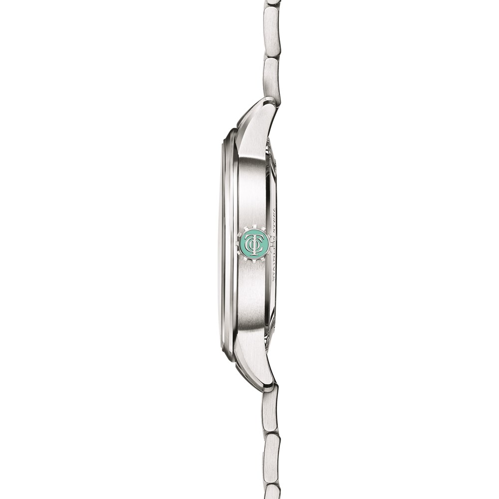 وإتقان التفاصيل ينعكس، أيضاً، في تشطيبات الهيكل، حيث يتدرج من المصقول إلى الساتاني، ويُختتم بترس أنيق يحمل شعار «تيفاني» الشهير بلون «Tiffany Blue». أما ظهر الهيكل، فيحمل الأرقام الرومانية ذاتها كتحية للساعة الأصلية.