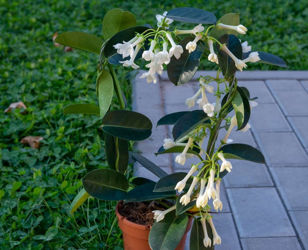 تُعرف، أيضًا، باسم «ستيفانوتس»، وهي زهرة شهيرة في حفلات الزفاف، تتميز برائحة الياسمين الفريدة. وتعد خيارًا ممتازًا كنباتٍ منزلي؛ لأنها تحتاج إلى ضوء ساطع غير مباشر. هذه النبتة الصغيرة، ذات الرائحة الزكية، تملأ أي غرفة بعطرها الجميل والخفيف. إنها زهرة مذهلة، تنبعث منها رائحة حلوة، وهادئة. وتحتاج هذه النبتة إلى ضوء ساطع وغير مباشر، وعند الري يجب ترك التربة لتجف قبل أن يتم ريها.
