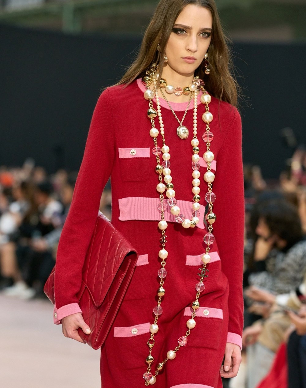 - في عروض خريف 2025، قدمت علامات، مثل: فاكيرا (Vaquera)، وجيفنشي (Givenchy)، تصاميم مذهلة مزدانة باللؤلؤ الضخم، منها: عقود، وحقائب، وأكمام مطرّزة، كأنها صنعت لتُلفت النظر. أما سيمون روشا (Simone Rocha)، فأتقنت إضفاء لمسات أنثوية على التفاصيل، وأضافت اللآلئ على الياقات، وأشرطة الحقائب، لتُظهر جمالكِ بدقّة خفية.
