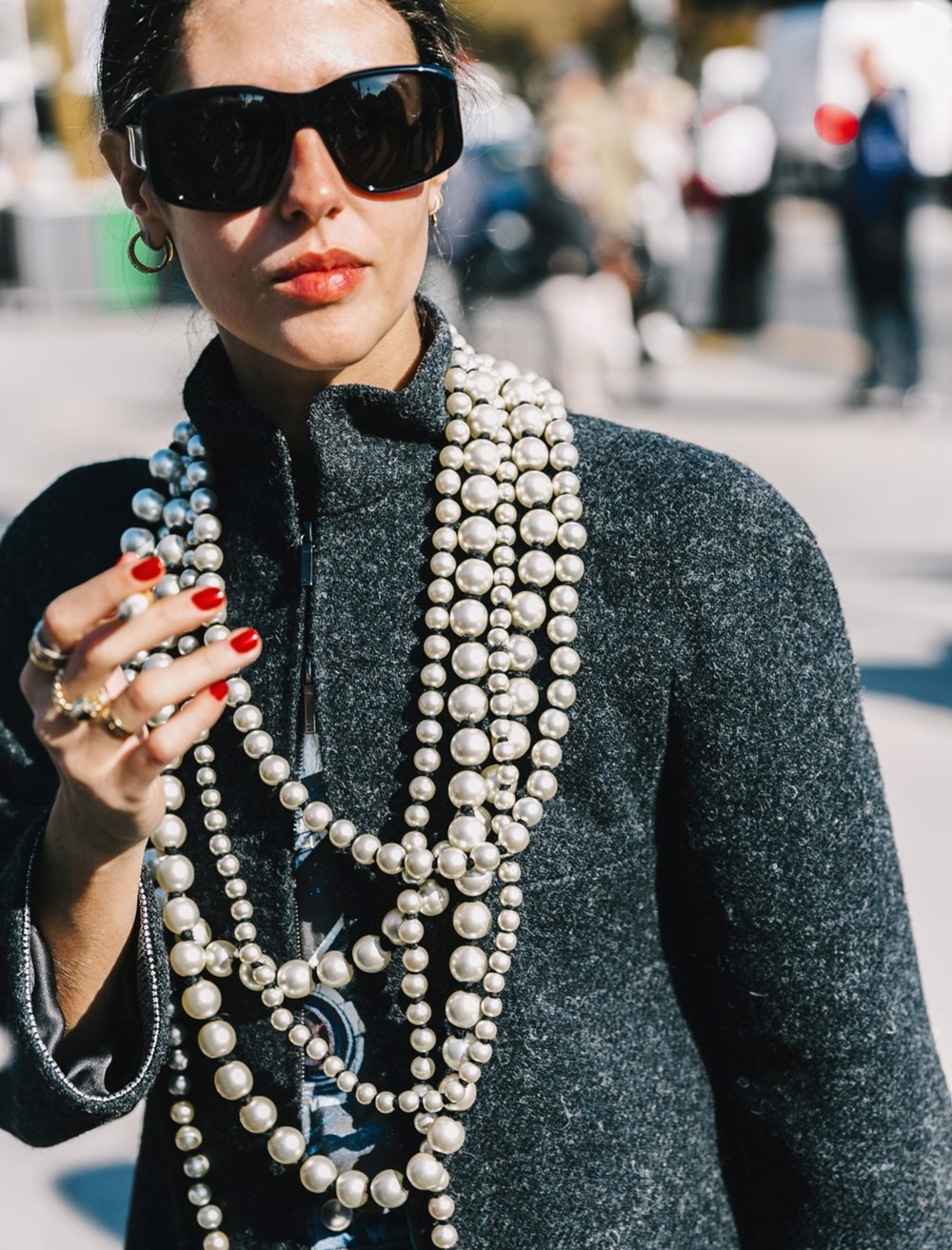 ارتبط اللؤلؤ، سابقاً، بإطلالات نساء خمسينيات القرن الماضي، ومنهن جاكي كينيدي (Jackie Kennedy). لكن اللؤلؤ العصري يعكس شخصيتكِ الفنية، والعفوية، وغير الخاضعة. ففي عروض برادا (Prada)، وميو ميو (Miu Miu)، تم استخدام اللؤلؤ ليس فقط كزينة، بل كرسالة: «نعم، نحتاج إلى الأنوثة اليوم؛ لأنها تذكّرنا بالقوة الناعمة، وسط عالم صاخب».