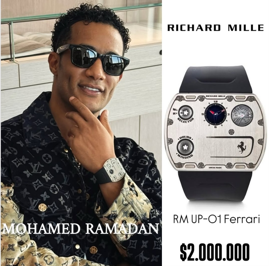 لفت النجم المصري محمد رمضان، المعروف بلقب "نمبر وان"، الأنظار مجددًا خلال أحدث جلسة تصوير بعدما ارتدى ساعة Richard Mille RM UP-01 Ferrari، التي تُعد من أكثر الساعات ندرة وإثارة في العالم، بحسب الرجل.