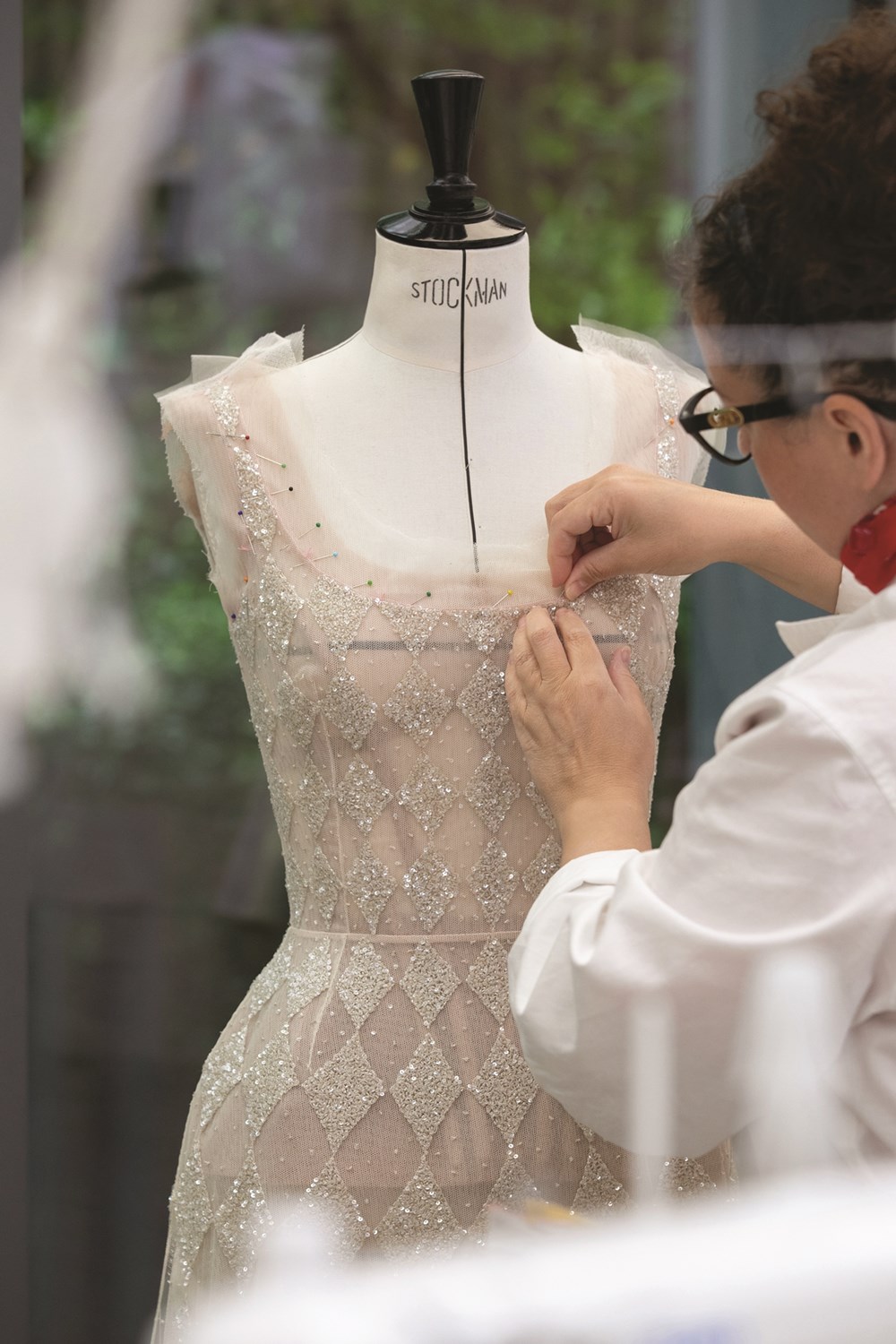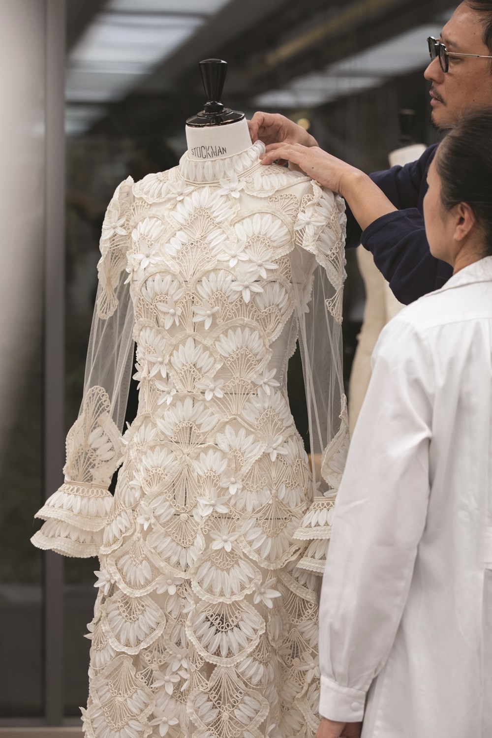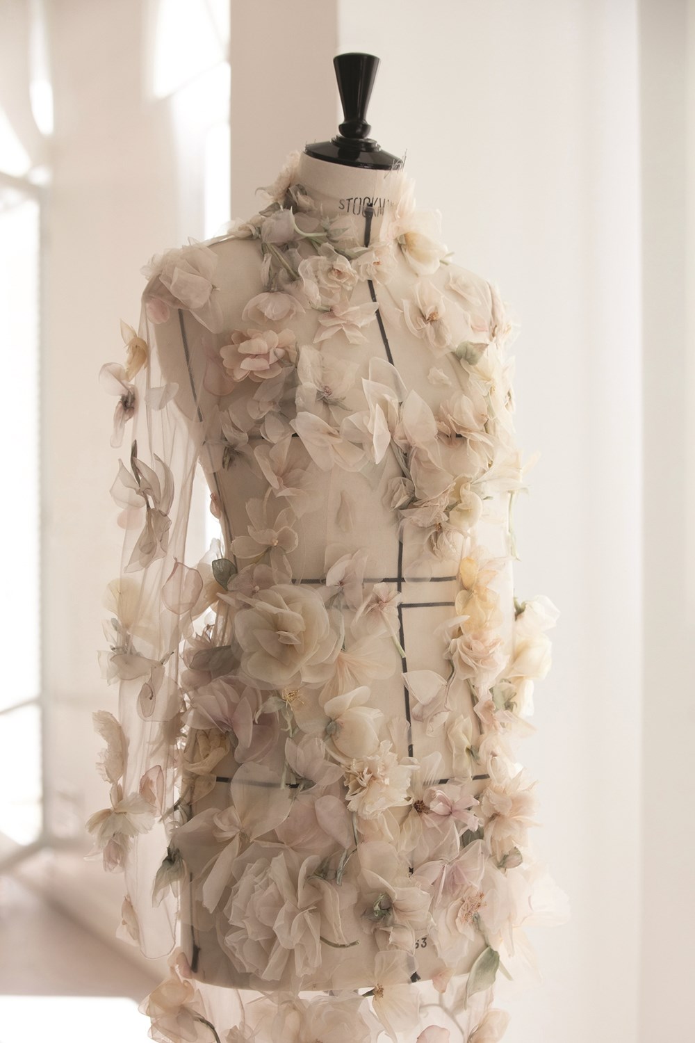 اخترنا، من هذه المجموعة، أربع إطلالات راقية، تُجسد المهارة اليدوية الاستثنائية، وتكشف عن حوارٍ إبداعي بين الخيال والدقة، وقد تطلبت هذه الإطلالات مئات الساعات من أعمال الخياطة، والتطريز المتقنة.