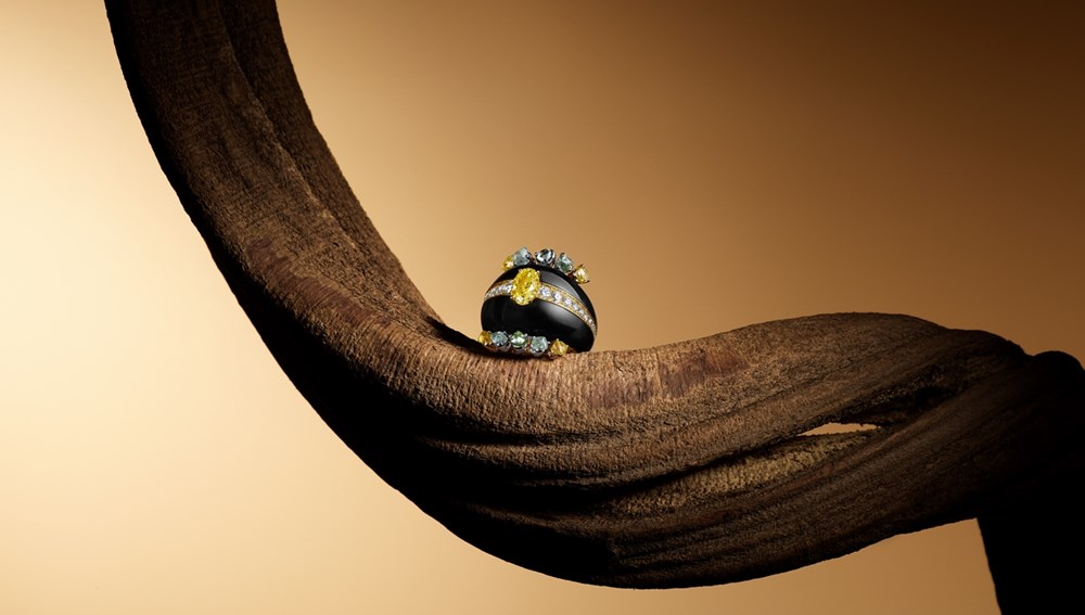 مجموعة «Baobab Magnitude»: تعرض تانغ وي طقم «باوباب ماجنيتيود»، الذي يُكرم القوة الملهمة لشجرة الباوباب العريقة، المستوحاة من تربة بوتسوانا. المذهل، هنا، هو التقنية المبتكرة المتمثلة في النحت اليدوي لحجر الجِت، وترصيعه بقطع من الألماس الخام الملون بألوان الأرض الدافئة: (الأخضر، الأصفر، البني)، في رمزية فلسفية للقوة المستمدة من الصفاء الداخلي.