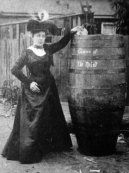 ناهزت من العمر 63 عاما ومع ذلك خاضت في 24 أكتوبر 1901 مغامرة شديدة الخطورة. جلست داخل برميل ضخم مغلق وتدحرجت من قمة شلالات نياجارا وهوت إلى الأسفل مع المياه المتدفقة، بحسب روسيا اليوم.