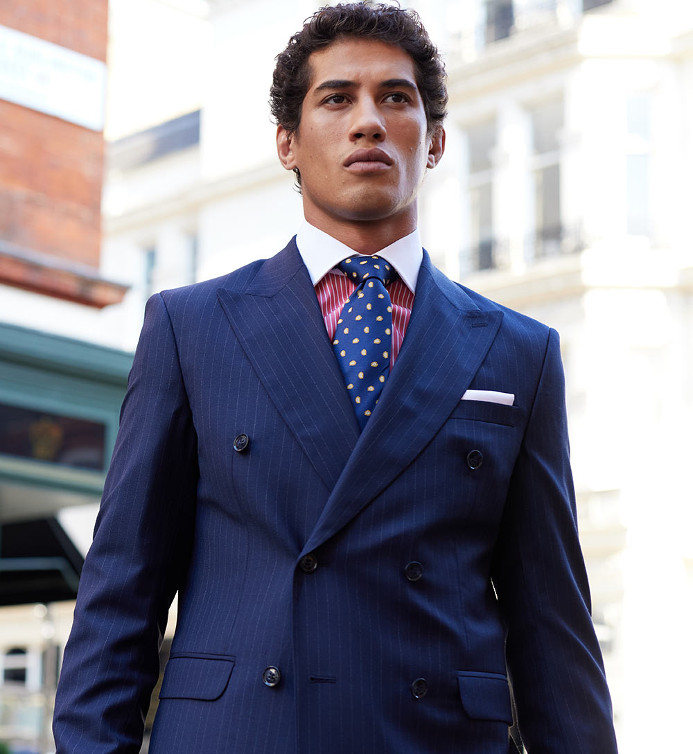 كانت الخطوط العمودية الرفيعة، المعروفة بنقشة البينسترايب (Pinstripe)، من أبرز علامات البدلات الفاخرة التي صممتها دور الأزياء البريطانية والإيطالية العريقة مثل Savile Row، Canali، وBrioni، لتصبح هذه الخطوط لغة غير منطوقة للأناقة والهيبة.