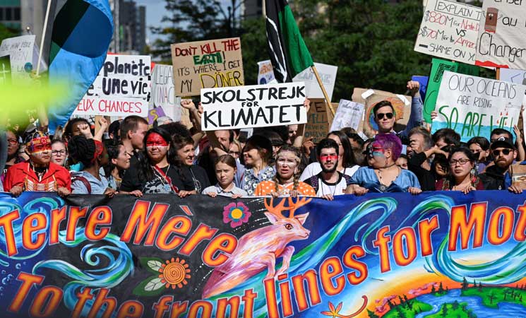 مونتريال - نظمت تظاهرة ضخمة في مونتريال الجمعة 27-9-2019 بحضور الناشطة البيئية السويدية غريتا تونبرغ في إطار “إضراب عالمي من أجل المناخ” بمشاركة آلاف الأشخاص.