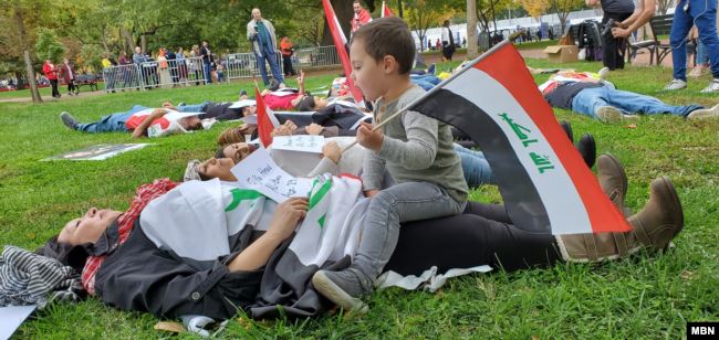 واشنطن - تظاهر عشرات الأميركيين من أصول عراقية أمام البيت الأبيض في العاصمة واشنطن، السبت، تضامنا مع الحراك في الشارع العراقي.