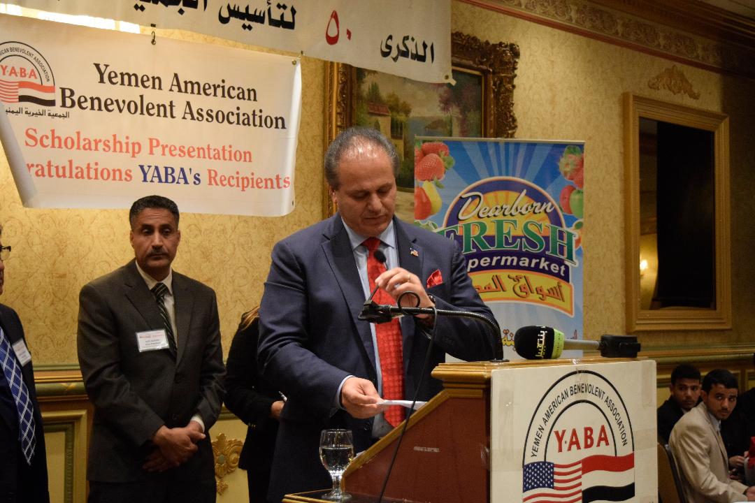 وفي ذات السياق ألقى عامر المكلاني كلمة مقتضبة رحب خلالها بالحضور ولكل من قام بمساندة عمل الجمعية طيلة مسيرتها التي ناهزت 50 عاما ً كما شكر مسؤولة المجلس التعليمي في مدينة (هامترامك ) جليلة أحمد على دورها المتميز كما شكرنخبة من أبناء الجالية منهم يوسف مسلم وديفيد طرفه وعادل معزب وفدوى حمود وفي بيضون كما شكر عددا ً من ضيوف الشرف منهم كيفن هوفر،ومن محكمة ديربورن مارك سومرز ، والقاضي سالم سلامة من المحكمة 19 والنائب عن ولاية ميشيغن عبد الله حمود والنائب عن ولاية ميسيغن ايزيك روبنسون .