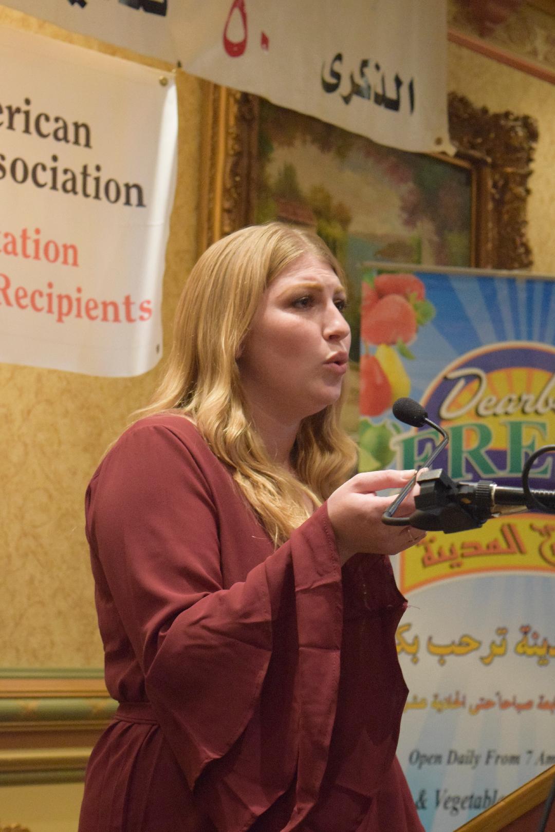 وتضمن الحفل ألقاء كلمة قصيرة لكيفن هوفر من وزارة الامن الداخلي أحد ضيوف الشرف الذي أثنى على الطلبة المتفوقين وناشدهم بضرورة تحقيق الافضل لانهم عماد المستقبل لهذه البلاد وللجالية كما هنأ جمعية ( يابا ) وفريق عملها مبديا ً إعجابه بمسيرتها المهنية في مجتمع الجالية ، كما ألقت النائب عن ولاية ميشيغن ديبي دنغل كلمة مقتصبة تطرقت الى سياسة إدارة ترامب ووجهت إنتقادها الحاد لها وقالت أن أخطاء هذه الادارة من شأنها تعريض أمن بلادنا الى الخطر .