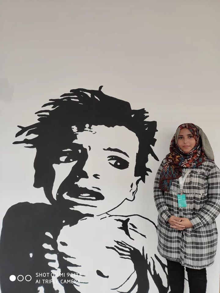 وبين أنّ“هيفاء ظلت هي وزميلاتها وزملاؤها، من الفنانين الغرافيتيين في اليمن، يرسمون جداريات على جدران بيوت ومباني اليمن المهدمة والمنخولة بالرصاص منذ 2012، وظلوا يرسمون عليها من الخارج، وكانوا يتعرضون لمضايقات الميليشيات التي كانت تسمح لهم بالرسم تارة وتمنعهم من ذلك تارات أخرى“.