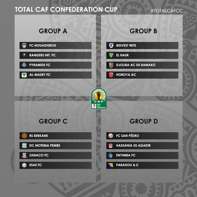 وأوقعت القرعة المصري البورسعيدي وبيراميدز، الذي تأهل للمرة الأولى إلى دور المجموعات، في المجموعة الأولى التي تضم معهما فريقا عربيا ثالثا، وهو نواذيبو من موريتانيا، إضافة إلى رينجرز النيجيري.