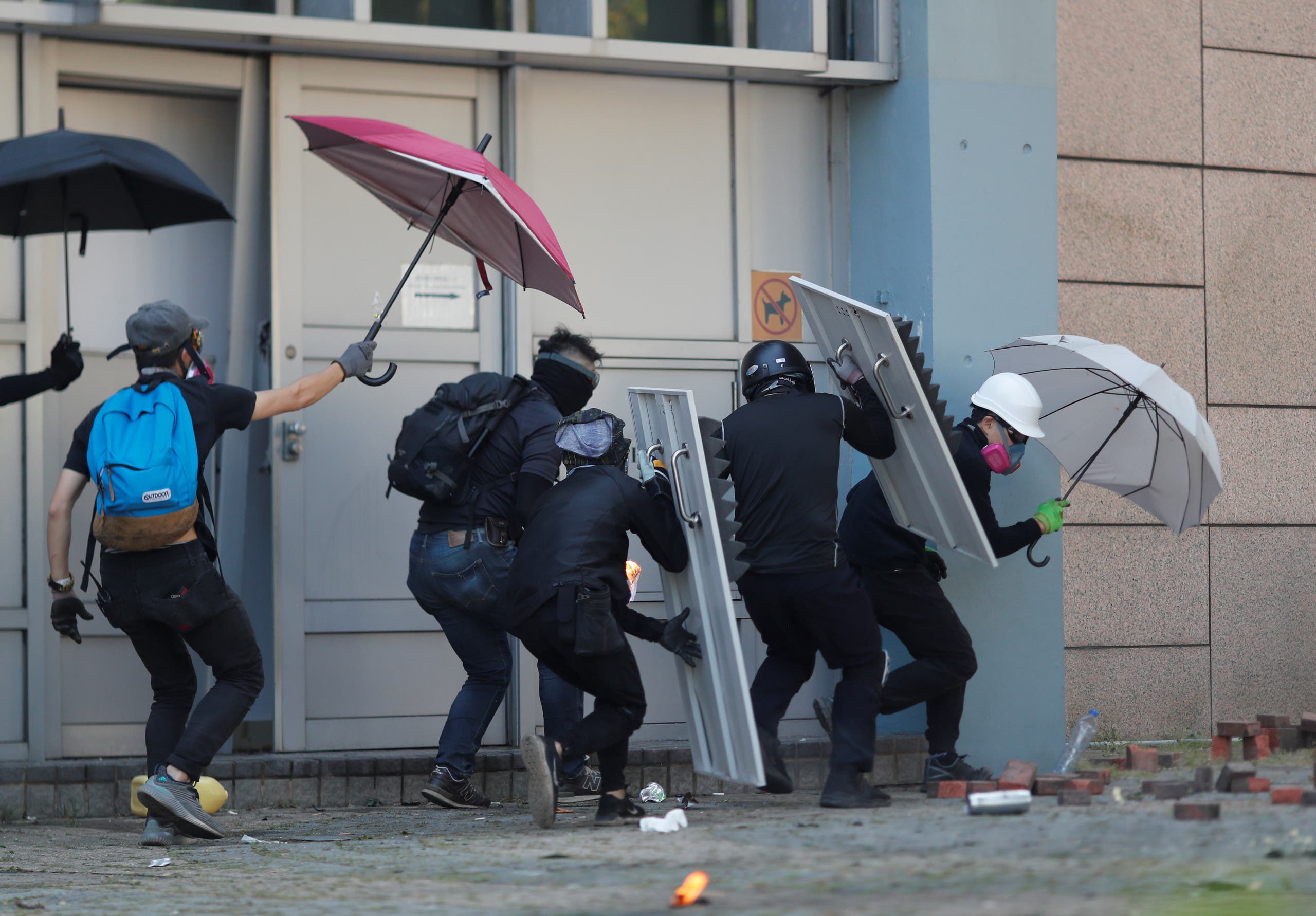 وقبل ساعات، أجبر الغاز المسيل للدموع الذي أطلقته الشرطة مئات من المحتجين، الذين قام بعضهم برشقها بقنابل بنزين، على الاختباء وراء تحصينات أقاموها بشكل بدائي في جامعة الفنون التطبيقية بهونغ كونغ في واحد من أكثر المشاهد إثارة منذ بدء الاحتجاجات قبل أكثر من 5 أشهر.