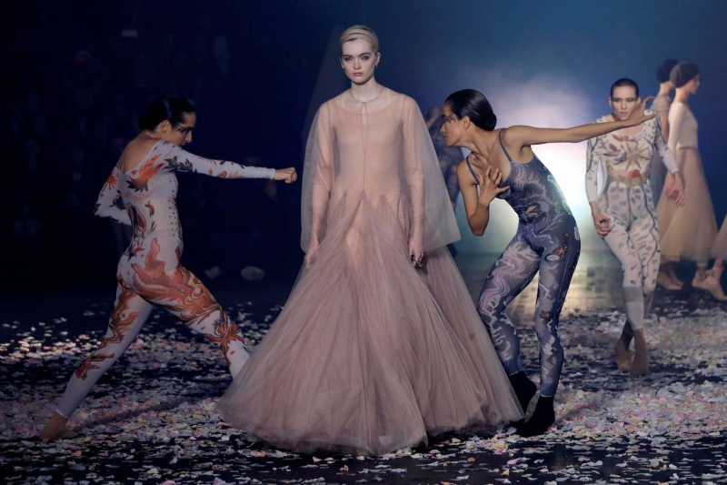 وتعاونت في سبتمبر 2018 المديرة الفنية لدار “ديور” الإيطالية ماريا غراتسيا كيوري مع مصممة الرقص شارون إيال في عرض تجاورت فيه العارضات بتنانير خفيفة مع راقصين بملابس تلاصق أجسامهم. وهي مجموعة مستوحاة من “الرقص كنشاط محرر”، تعرض بعض تصاميمها في لاهاي.