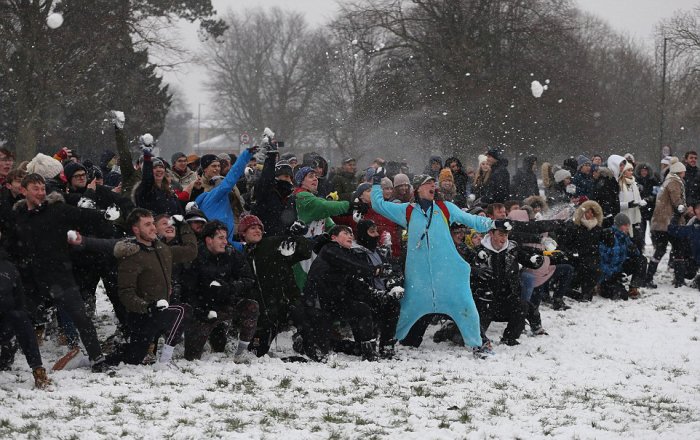 وقال نائب رئيس الشرطة "مات بارنز" أمام مجموعة من ضباط الشرطة الذين شاركوا في قتال كرة الثلج "ذكرت هذه المصادر الإخبارية أن لدينا قانونًا جديدًا أصدره عمدتنا ، يحظر خوض معركة كرة ثلجية".