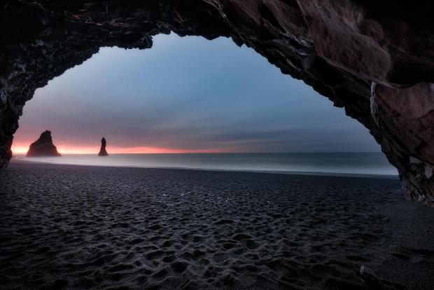 يوجد داخل جبل رينسفيال الذي تعلوه أبراج شاهقة تطل على الشاطئ الرملي الأسود، جدار مذهل من الأعمدة البازلتية التي تخفي في قلبها كهف طبيعي مذهل. يلجأ السياح إلى هذا الكهف في حال ساءت الأحوال الجوية على الشاطئ، ويمتلك هذا الكهف تاريخاً طويلاً في توفير المأوى للمسافرين على مر الزمان، كما أنه مكان آمن تلجأ إليه الحيوانات عندما يكون الطقس قاسياً.