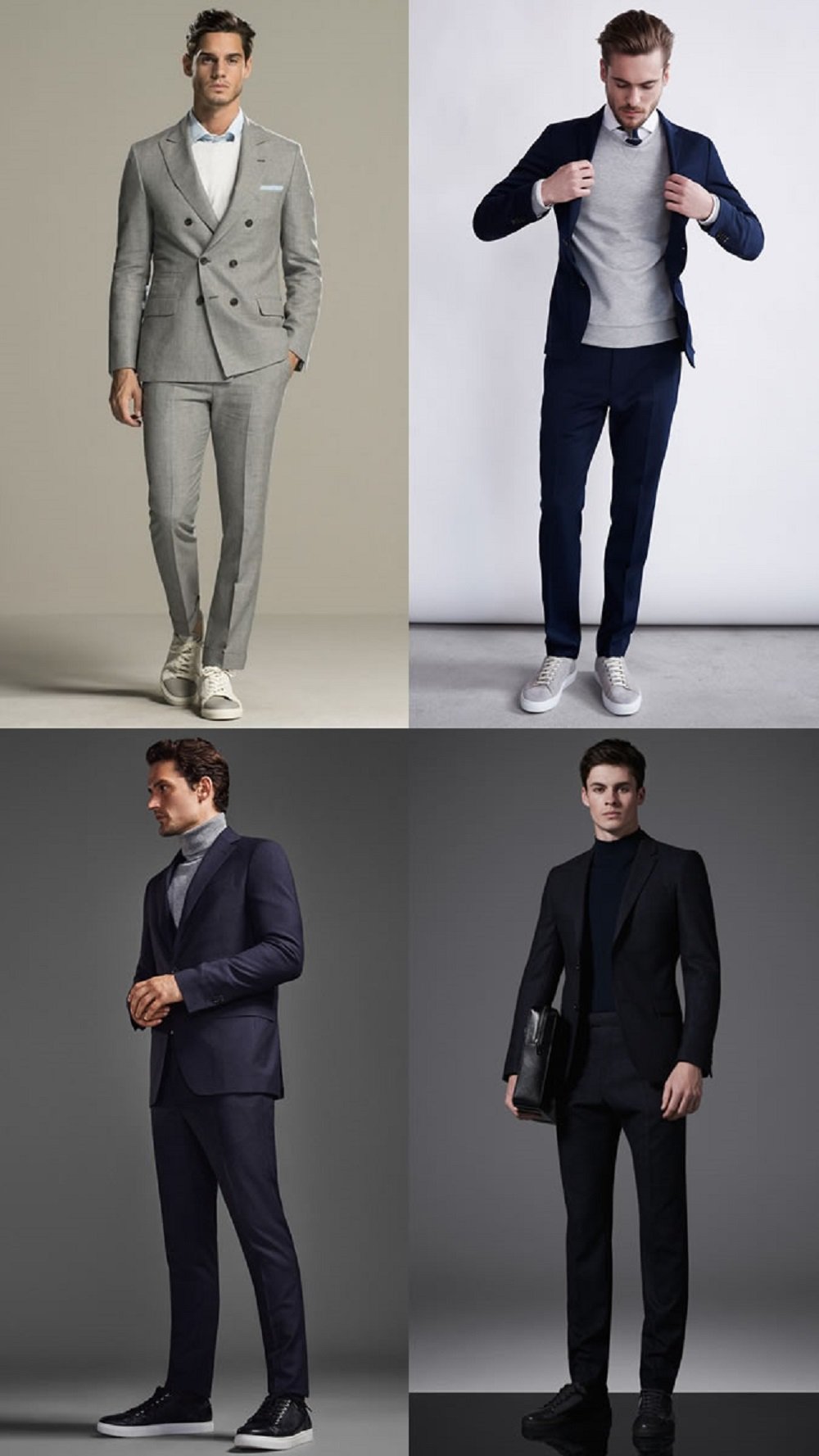 وربما من أحد أخطاء أناقة الرجل في العملالمتعلقة بارتداء الأحذية الرياضية على البدل الكلاسيكية هو عدم اختيار البدلة المناسبة فهذا النمط من ارتداء الملابس لا يتماشى مع أي نوع من أنواع البدل سوى التي تنحدر من نوعية SlimFit .