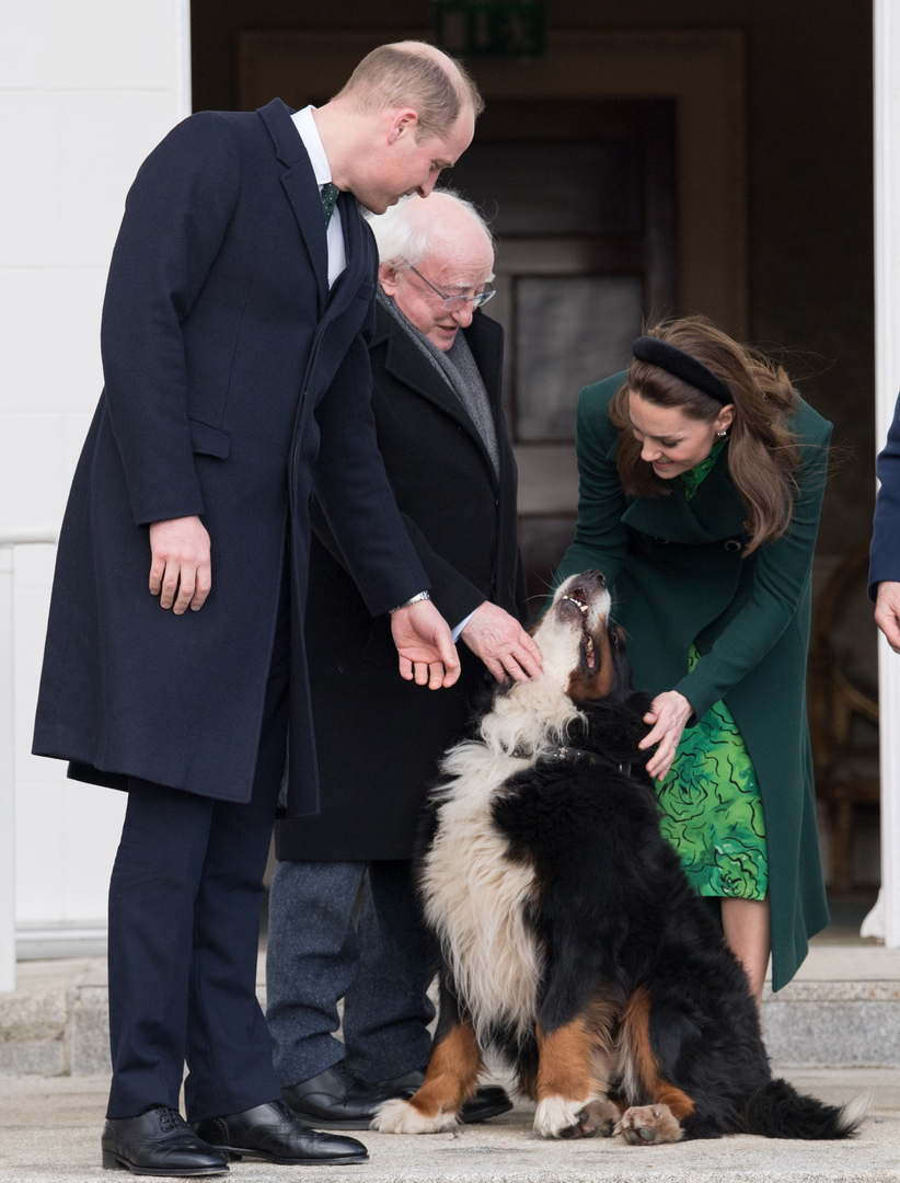 ولم يبد على دوقة كامبريدج أي قلق حول الدعابة التي ألقتها سابينا، بل على العكس بدت مسرورة لمقابلة مضيفيها وكلبهما.
