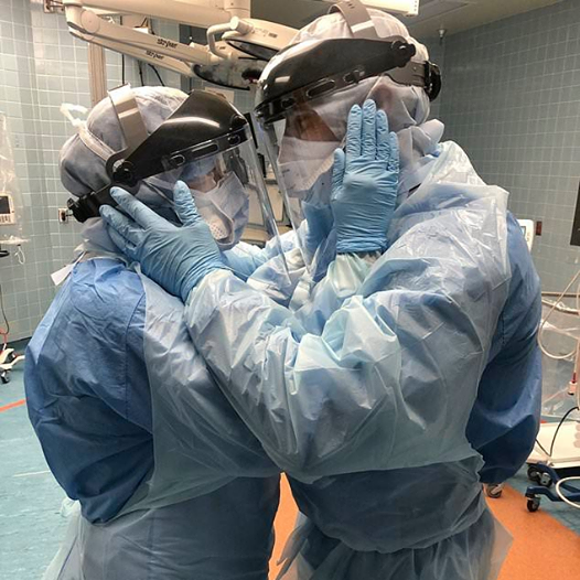 يقاتل الممرضان الزوجان على الخطوط الأمامية ضد كورونا معًا، ويعملان لساعات طويلة ومرهقة ولا يمكنهما لمس بعضهما بعضا إلا أثناء ارتداء معدات السلامة خوفا من حالة إصابة أحدهما.