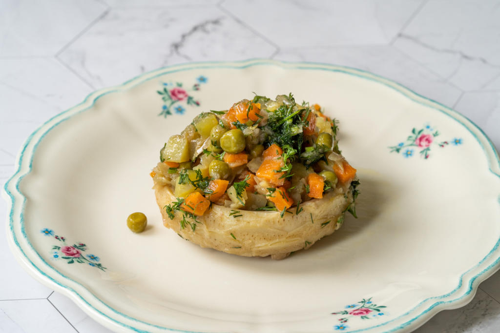 يمكنك سلق حبة الخرشوف لـ 5 دقائق، وعادة المثلجة منها لا تحتاج إلى سلق، ثم وضعها في الفرن وكلء حبتها بالخضار المشكلة، والمشوحة مع القليل من الزيت.