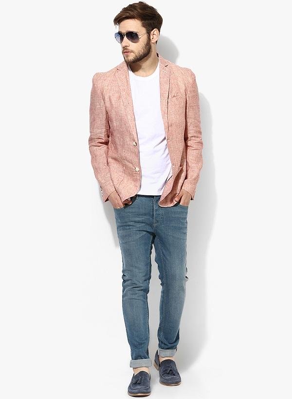تنسيق بنطلون جينز مع بليزر خفيف