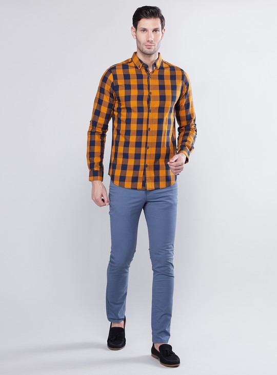 تنسيق قميص كاروهات مع بنطلون