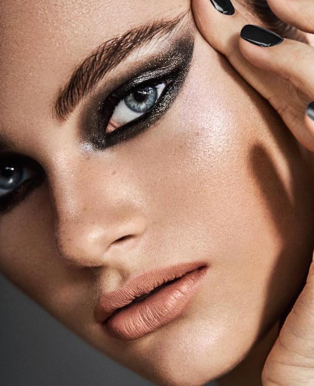 إذا كنت من محبات المكياج السموكي الأسود الحاد، فإنه أفضل وسيلة للحصول على إطلالة مثيرة ملائمة للسهرات والمناسبات، وهو مكياج عيون قوي يبرز العينين ويمنح المرأة نظرات حادة ساحرة. طبقي في البداية، ظلال العيون السوداء على الجفن العلوي بشكل متدرج، من ثم استخدمي الظل الأسود الداكن والرمادي والفضي على كسرة العين، على أن تمزجي الظلال بشكل جيد. من ثم، طبقي الظل الأسود على زاوية الخارجية للعين بأسلوب مجنح سموكي مسحوب الى خارج العين.
