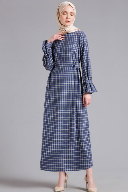 إذا كنتِ ترغبين في إطلالة كاجوال؛ يمكنكِ اعتماد هذه الإطلالة، بارتداء عباية كاروهات باللونين الكحلي والبيج، وبها صف من الأزرار عند منطقة الصدر، وبأكمام واسعة من الأطراف.