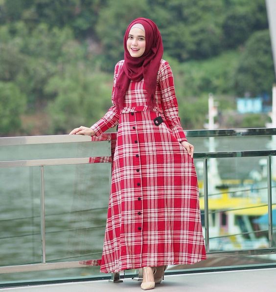 إذا كنتِ مدعوة على مناسبة ما، كحفل خطوبة أو مدعوة على سهرة، وترغبين في الظهور بإطلالة جذابة وراقية، يمكنك اعتماد هذه الإطلالة، بارتداء عباية كاروهات باللون الأحمر والأبيض، بتصميم منفوش، وبها صف من الأزرار من عند الخصر وحتى نهاية الفستان.