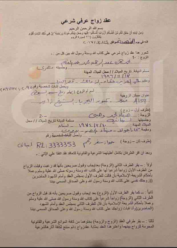 انتشرت خلال الساعات الماضية صورة من عقد زواج عرفي بين المطربة هيفاء وهبي، والمنتج محمد وزيري، وجاء بتاريخ 24 مارس 2017.
