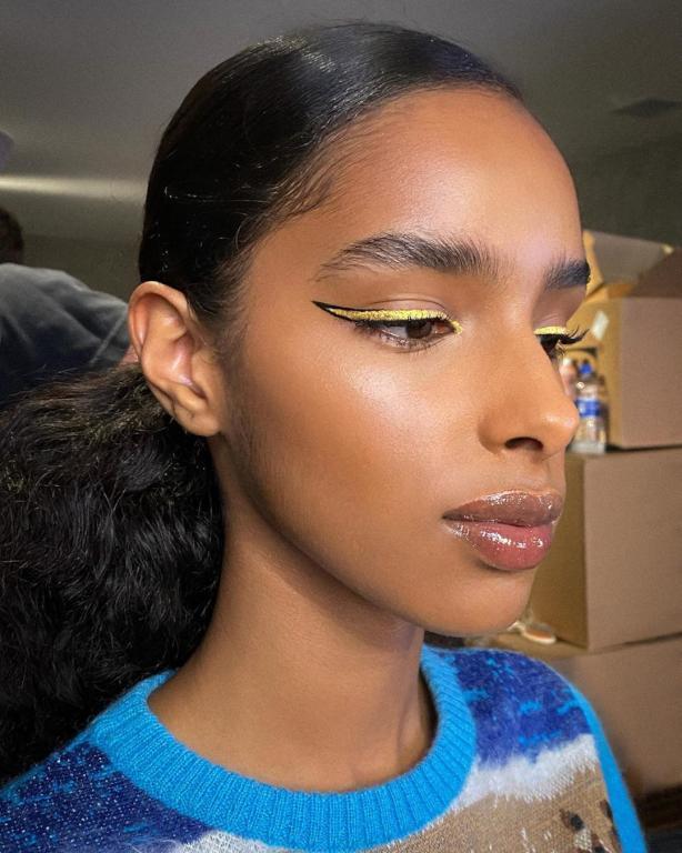 لماذا لا تستبدلين الأيلاينر المجنح ذات اللون الواحد، بلونين متناقضين، الأول جريء، والثاني باللون الأسود؟ فأسلوب المكياج هذا الذي يعد من أبرز صيحات المكياج حالياً سيمنحك عينين مسحوبتين ونظرات جريئة وجذابة جداً. استخدمي على سبيل المثال، الأيلاينر باللونين الأصفر والأسود...