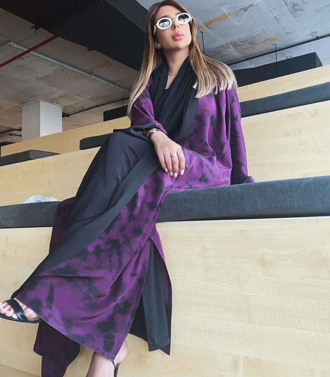 مريم الياسي، مصممة أزياء بدأت في عمر صغير، ولاقت موهبتها نجاحًا كبيرًا، وتُعتبر الآن من أهم مدوِّنات الموضة والجمال، ويتابعها في حسابها على إنستجرام أكثر من ٦٧٠ ألف متابع. ولجمال خياراتها بالعباية، استوحينا لكِ منها عدة إطلالات؛ حيث تزينت بعباية بيضاء مزينة بقَصَّة البليزر في الجزء العلوي ومزينة بالقطن الأبيض لمظهر أنثوي مميز، وتألقت بعباية زهرية مزينة بالفصوص الزهرية الناعمة، وأكملت جمالها بالمجوهرات الذهبية المزينة بالحجر الملون لمظهر شبابي مفعم بالحياة، وظهرت في الإطلالة الثالثة بعباءة بنفسجية مرسومة بطبعات سوداء لإطلالة مناسبة لخروجات المساء.