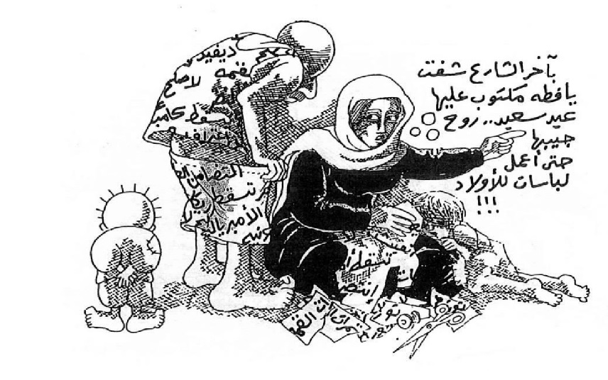 مقابل هاتين الشخصيتين تقف شخصيات أخرى، فهناك شخصية السمين صاحب المؤخرة العارية والذي لا أقدام له مقلدا به بعض القيادات الفلسطينية والعربية والمطبعين، وأيضا شخصية الجندي الإسرائيلي، طويل الأنف، الذي في أغلب الحالات يكون مرتبكا أمام حجارة الأطفال، شريرا أمام القيادات الانتهازية.