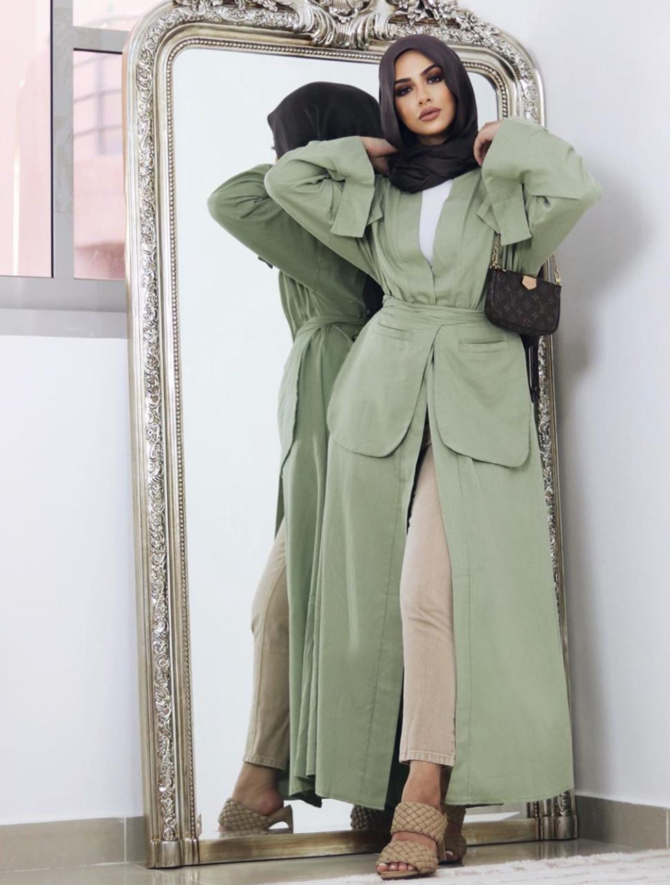 اجتاحت ألوان الباستيل خطوط الموضة عالميًّا لا سيما في الأزياء، ومن أبرز القطع المناسبة للمحجبات في فصل الخريف تألقت سهى بعدة خيارات، منها قميص أبيض رسمي وبنطال أسود مع بلوزة خضراء بدرجة الباستيل المزين بحزام للخصر، وذلك لإطلالة نهارية عملية مناسبة لمختلف المشاوير، وفي إطلالة أخرى تجملت بعباءة بدرجة الباستيل الأخضر المزين بجيوب وأكملتها بتيشيرت أبيض وبنطال بني ناعم لخيار محتشم مناسب للمشاوير اليومية، وفي الخيار الثالث تجملت بجمبسوت أصفر مزين بحزام للخصر مع معطف أصفر ناعم لإطلالة مناسبة للشابات.