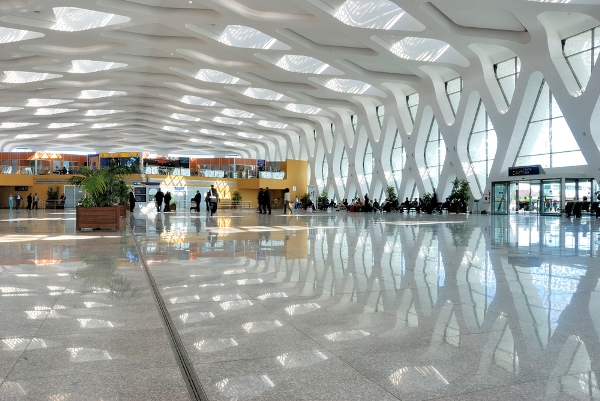 شُيّد "مطار مراكش المنارة" في المغرب، وهو يتبع في تصميمه الهندسة الإسلاميّة الكلاسيكيّة، ويمتاز بزخارف طبيعية منقوشة في شبكة ضخمة من أشكال الماس الخرسانية العملاقة. المطار عبارة عن قطعة فنيّة. يشبه الهيكل ملعب كرة قدم، ويقدم شبكة حديد ضخمة، مع مشهد تحليق الطائرات. تم استخدام المطار قاعدة عسكرية خلال الحرب العالميّة الثانية، ومركز قيادة وتوقف للبضائع المتحالفة والإمدادات والأفراد. يوجد حاليًّا محطتا ركاب، بسعة حوالي 4.5 مليون مسافر، سنويًّا.