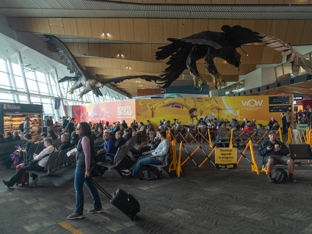 فاز المطار بعدد من الجوائز لتصميمه، وهو ثالث أكثر المطارات ازدحامًا في نيوزيلندا، ويمتدّ على 270 فدّانًا من الأرض، وله سمعة في عمليّات الإنزال القاسية والمضطربة بسبب الرياح القوية الناتجة عن "مضيق كوك". ومع ذلك، فإن المنطقة المحيطة هي نموذجية لنيوزيلندا، بخاصّة التلال المتدحرجة والخضر المورقة، والتي تكمل الهيكل الفريد الذي يشبه القبة من الداخل.