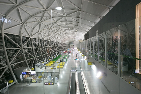 يقع مطار "كانساي" الدولي على جزيرة اصطناعيٍة في وسط خليج "أوساكا"، وكان افتتح للمرّة الأولى في سنة 1994 لتخفيف الازدحام في مطار أوساكا الدولي. يبلغ طول المبنى رقم 1 حوالي كيلومترين، وهو أحد أطول المباني المتعلّقة في العالم. تم بناء المطار أيضًا لمقاومة الزلازل والأعاصير ، وهي ميزات أكثر أهمية من أي وقت مضى (خاصة بالنسبة لمطار على الماء).