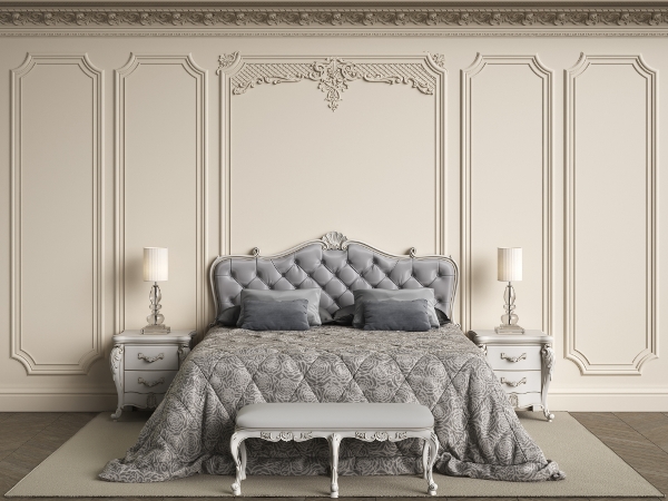 يبعد سرير غرفة النوم الكلاسيك عن الأشكال المستقيمة التابعة للطراز المودرن، وفيه تعرجات ودوائر وتقوُّسات، ويتخلّله الحفر. علمًا أن رأسية السرير في غرف النوم الكلاسيك تتخذ غالبًا هيئة التاج. لا يُنصح بإدخال المرايا إلى السرير، علمًا أن أسفل السرير الخشب مزوّد بتاج على غرار ظهر السرير. يمكن أن تُزود زوايا السرير بأعمدة من أنماط عدة (الرومانية أو الفلورانسية أو العثمانية).