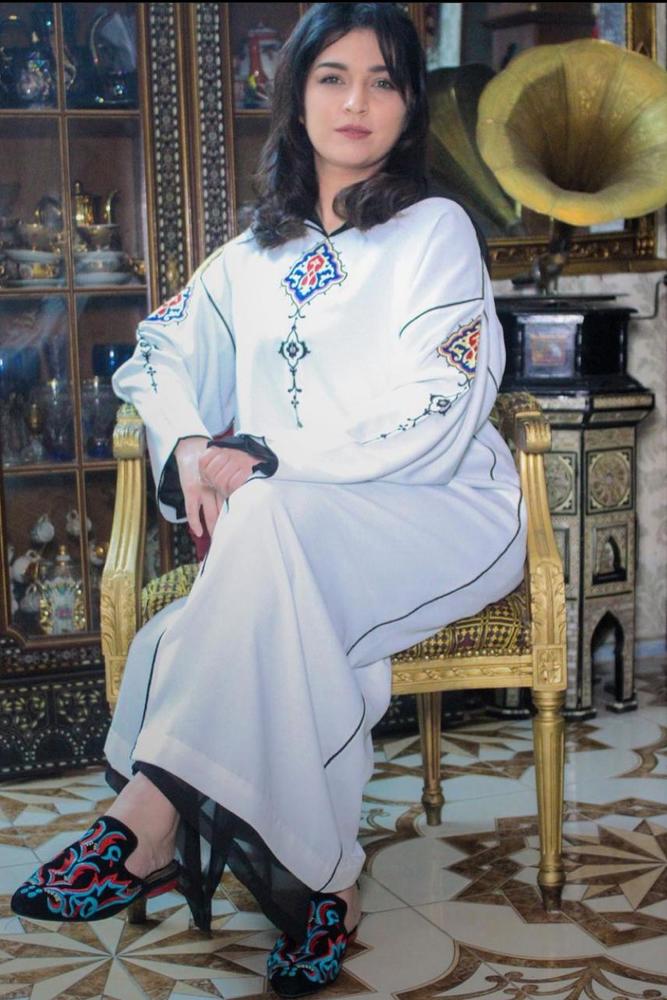 إطلالات فرح الفاسي بالقفاطين والجلابيات الملونة