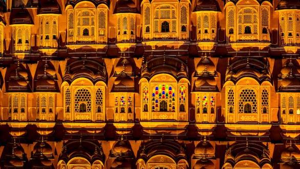يتألق قصر الرياح بشكل رائع بحجارته الرملية الحمراء والوردية. تم بناء هذا القصر خصيصًا للاستمتاع بالنسيم العليل، وكان من المفترض أن يكون قصرًا صيفيًا.